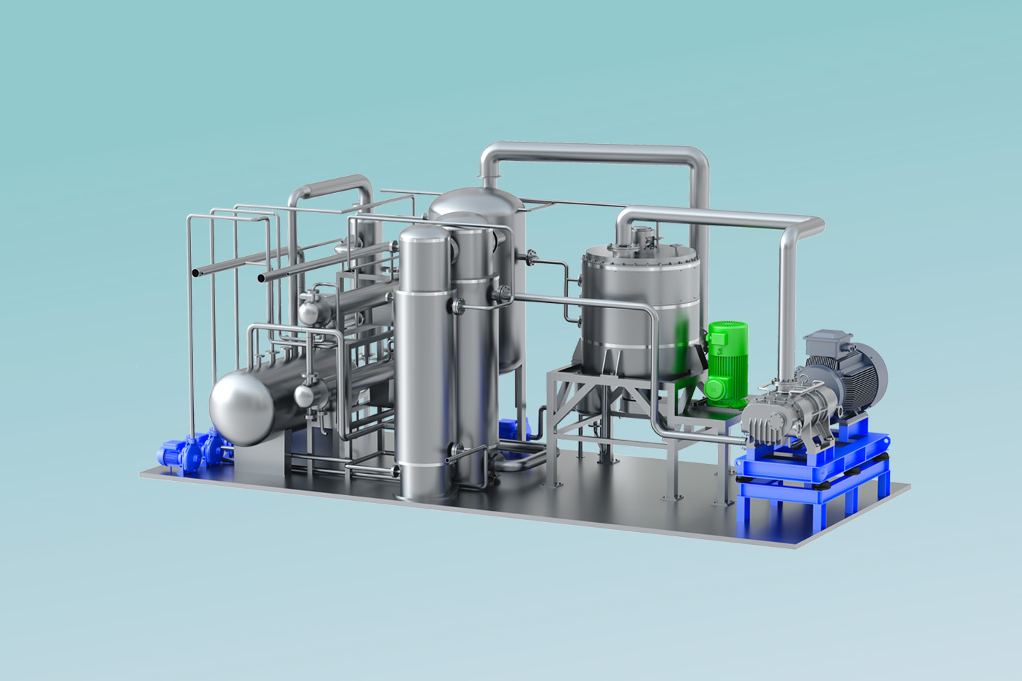 了解詳情MVR熱泵精餾系統(tǒng)以高效旋轉(zhuǎn)精餾床為基礎(chǔ),利用離心力場(chǎng)代替重力場(chǎng),強(qiáng)化相與相之間的相對(duì)速度和相互接觸,通過強(qiáng)化傳質(zhì)傳熱來提高分離效率縮小設(shè)備體積。 通過在系統(tǒng)中引入適用于小流量、大壓比的螺桿式蒸汽壓縮機(jī),即可實(shí)現(xiàn)MVR循環(huán)熱泵精餾。
